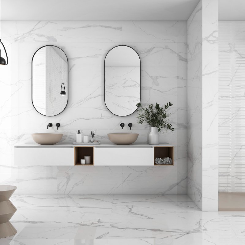 Elevate your interiors with Geotiles’ Aurora collection—porcelain tiles that capture the essence of Calacatta Gold marble. Available in polished and matt finishes across various sizes, these tiles bring timeless elegance to any space.